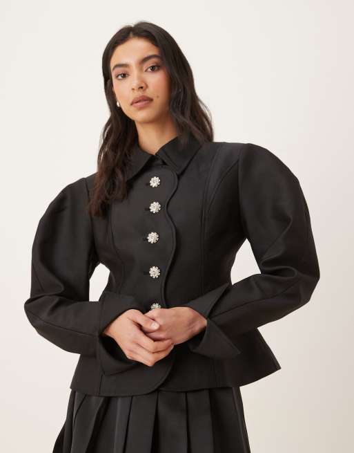 JW PEI scalloped placket volume sleeve blazer co-ord in black