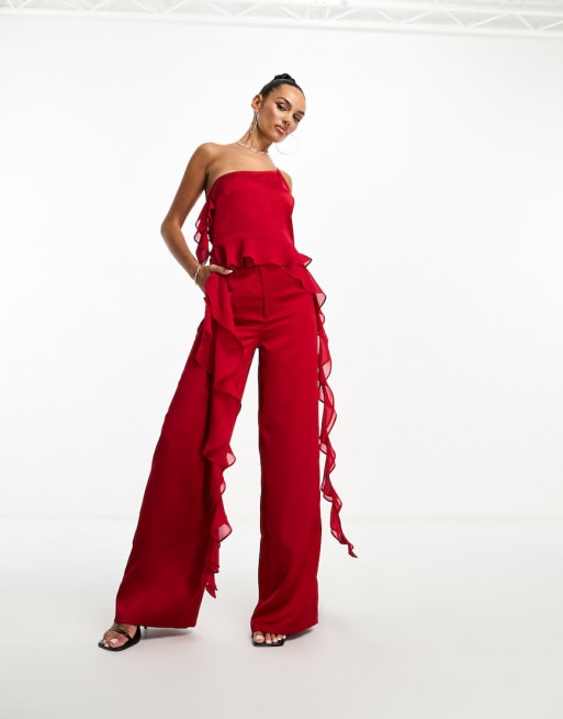 Kaiia chiffon ruffle cami top and trouser co-ord in red