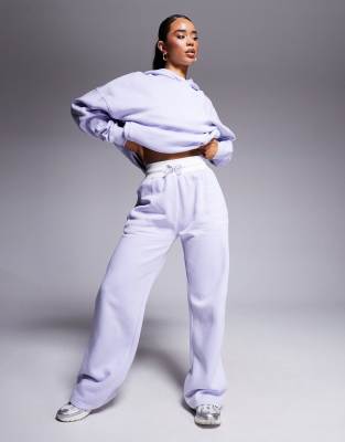 Kaiia contrast ribbed waistband wide leg jogger co-ord in lilac