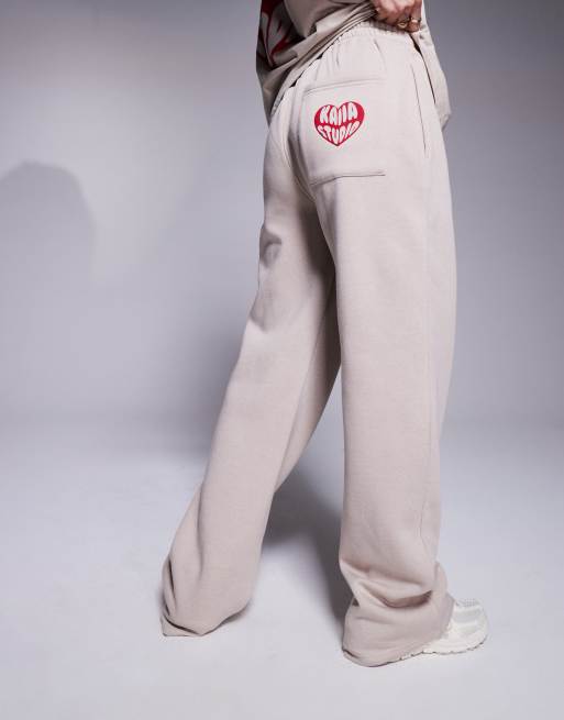 Kaiia cotton blend heart back pocket logo jogger co-ord in stone and red