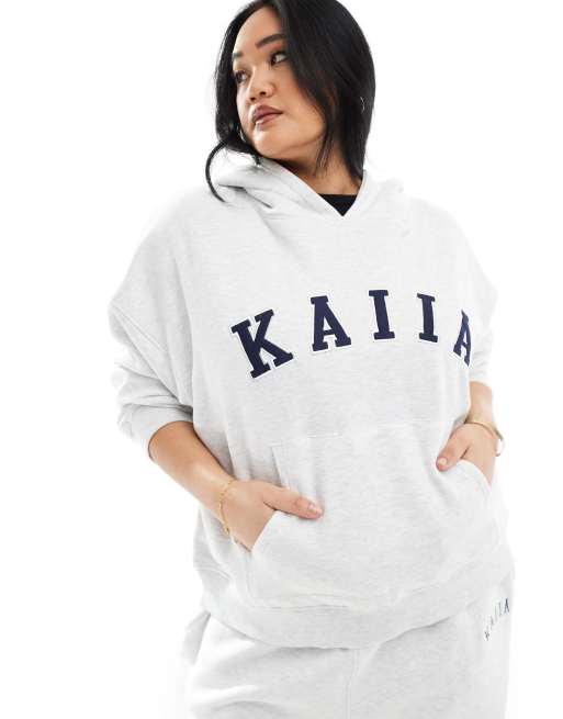 Kaiia cotton blend Plus logo oversized hoodie co-ord in light grey