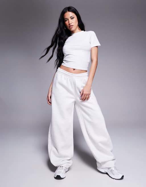 Kaiia cotton rich logo pocket detail barrel leg joggers co-ord in light grey marl