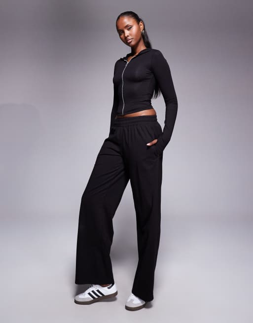 Kaiia cotton rich soft touch wide leg jogger co-ord in black