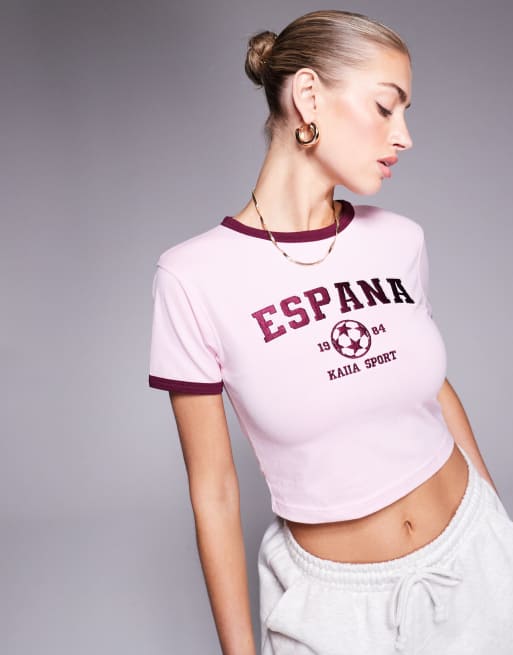 Kaiia cotton rich sport contrast trim Espana baby tee co-ord in pink and burgundy