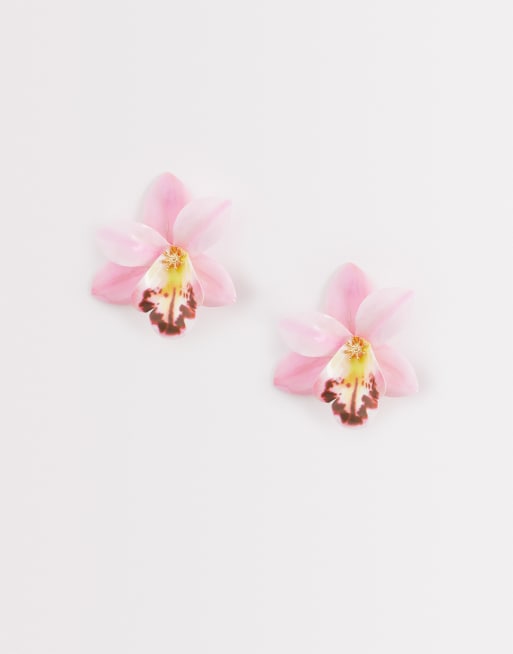 Kaiia exclusive 3D orchid flower stud earrings in pink