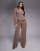 Kaiia exclusive button front fitted shirt and tailored trousers co-ord in beige pinstripe