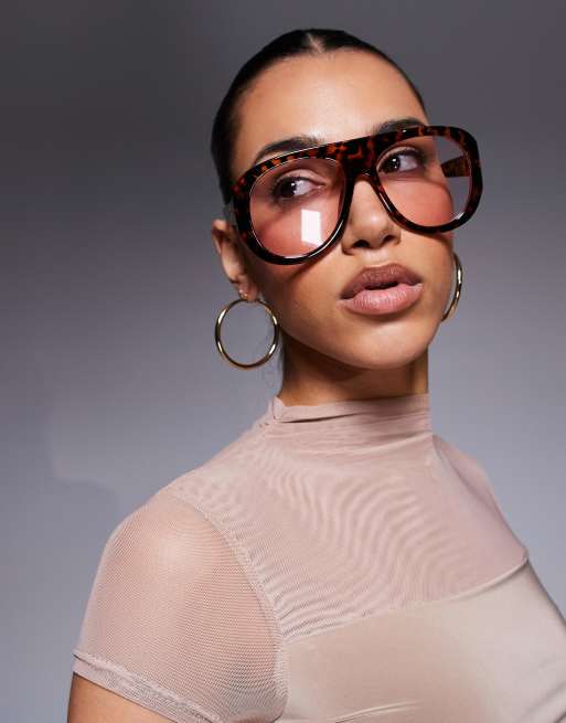 Kaiia exclusive chunky blush lens aviator sunglasses in brown tort