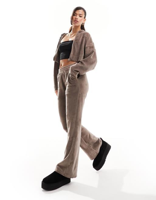 Kaiia exclusive cotton blend studio logo towelling flared joggers co-ord in brown