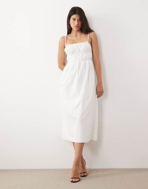 Kaiia exclusive cotton shirred bust detail midi dress in white