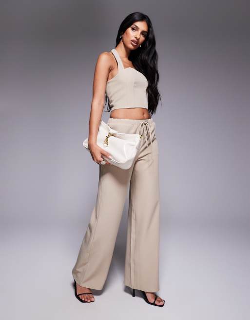 Kaiia exclusive drawstring waist wide leg trousers co-ord in stone