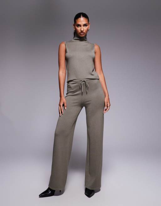 Kaiia exclusive fine knit drawstring trouser co-ord in olive