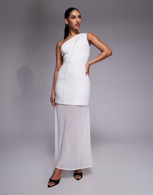 Kaiia exclusive one shoulder button through detail sheer hem maxi dress in white