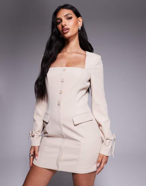 Kaiia exclusive square neck bow cuff detail tailored blazer mini dress in cream
