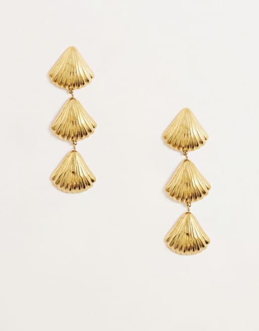 Kaiia exclusive stainless steel shell drop earrings in gold