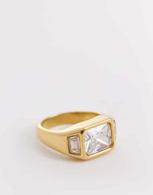 Kaiia exclusive stainless steel square diamante ring in gold