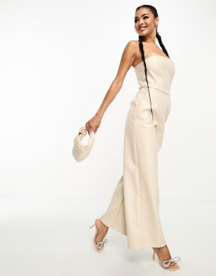 Kaiia leather look bandeau wide leg jumpsuit in stone