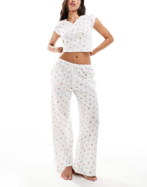 Kaiia mix and match pointelle pyjama co-ord in cream ditsy print