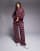 Kaiia patch detail oversized hoodie and tie waist trousers co-ord in burgundy and cream stripe