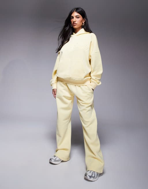 Kaiia Studio embossed logo oversized hoodie and wide leg joggers co-ord in yellow