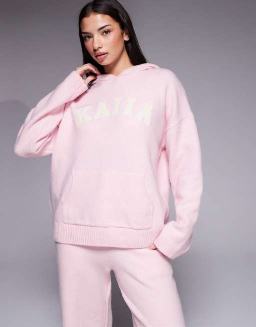 Kaiia wool feel knitted embroidered logo hoodie co-ord in pink
