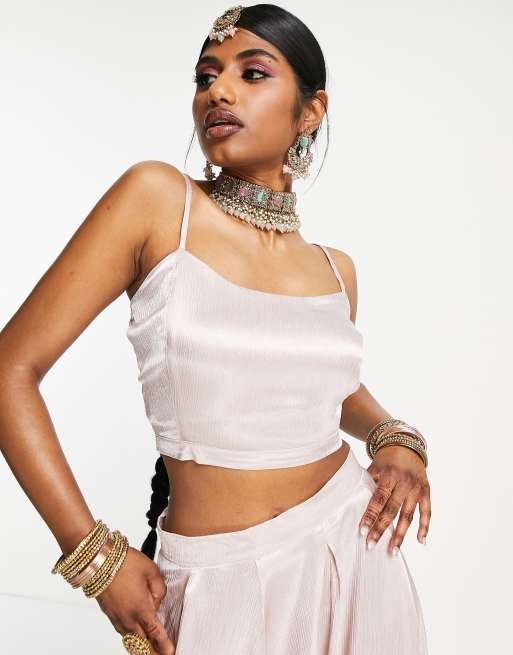 Kanya London Bridesmaid Lehenga spaghetti strap crop top in pink