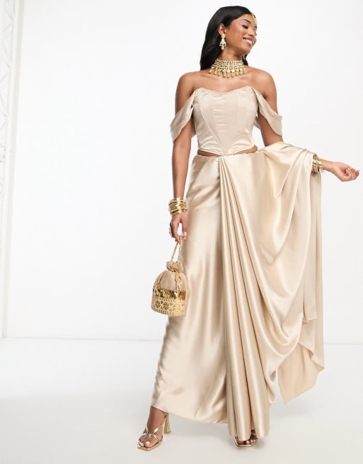 Kanya London Bridesmaid saree and corset top co-ord in champagne