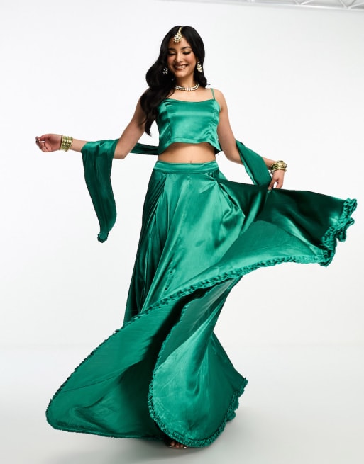 Kanya London Lehenga co-ord in dark green