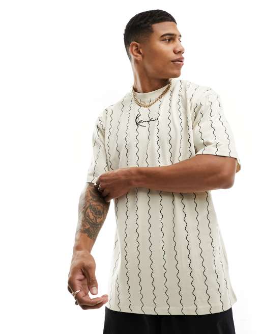 Karl Kani signature oversized t-shirt in off white with wavy vertical stripes