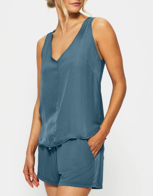 KBX Raye satin jersey vest in blue