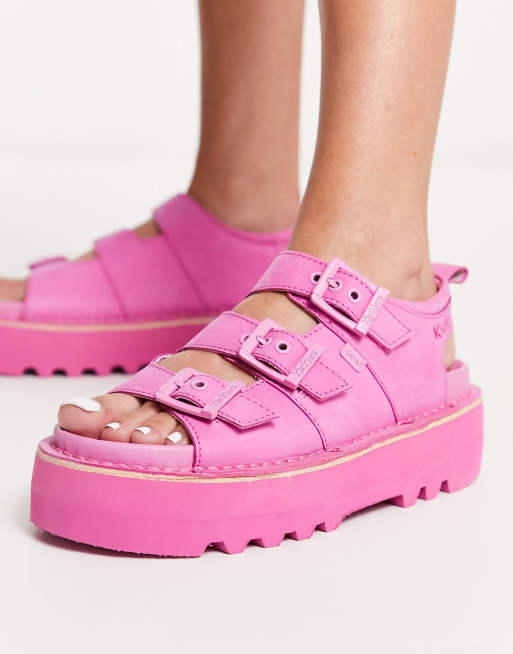 Kickers Knox platform sandals in pink nubuck leather