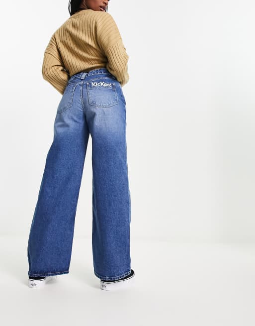 Kickers low rise baggy jeans in mid blue