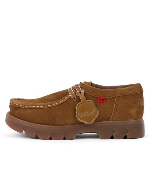 - French designed youth brand Kickers saw a resurgence in popularity when they were adopted by the rave scene of the early 90s. With their distinctive tough crepe soles and nubuck leather uppers, classic Kick-Hi boots replace the trainer as the distinctive casual shoe of choice.