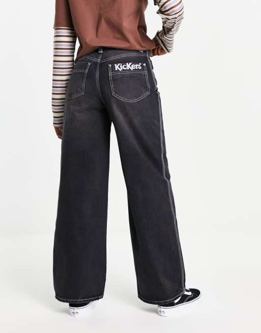 Kickers wide leg skater jeans in black with bum logo