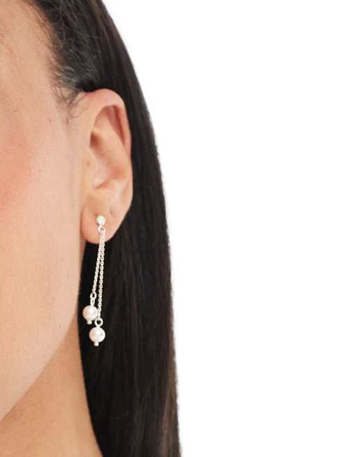 Kingsley Ryan double faux pearl and chain drop earrings in sterling silver