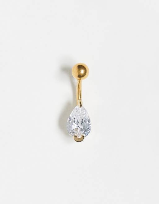 Kingsley Ryan gold plated steel tear drop crystal belly bar
