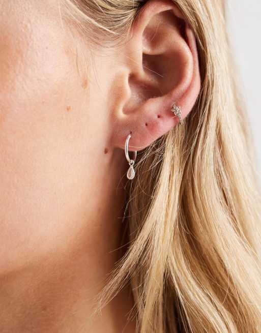 Kingsley Ryan hoop earrings with teardrop crystal charm in sterling silver