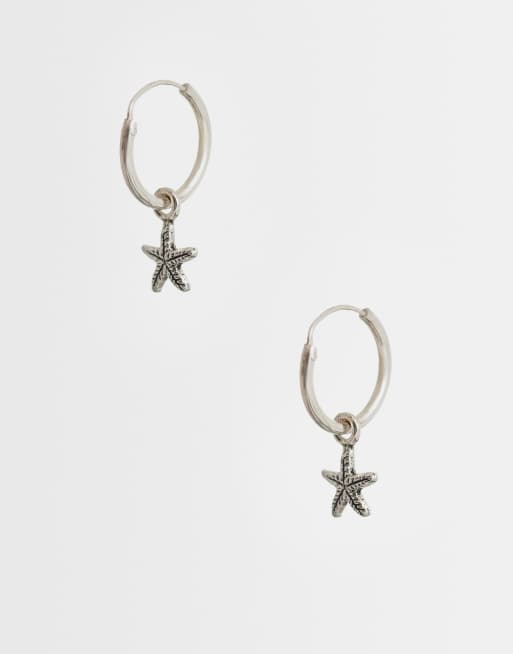 Kingsley Ryan starfish charm hoops in sterling silver