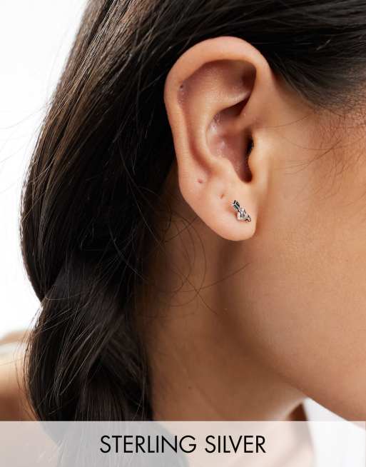 Kingsley Ryan Sterling Silver cross heart stud earrings in silver