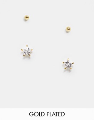 Kingsley Ryan stud and crystal star earring multipack in gold plate