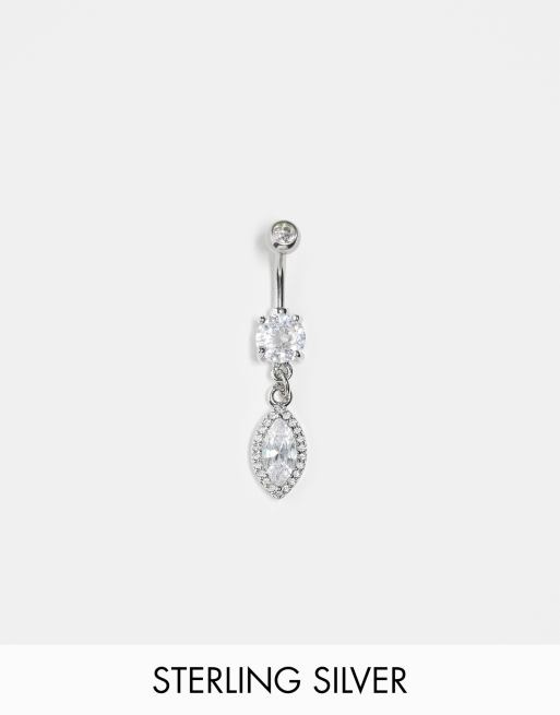 Kingsley Ryan teardrop diamante belly bar in sterling silver