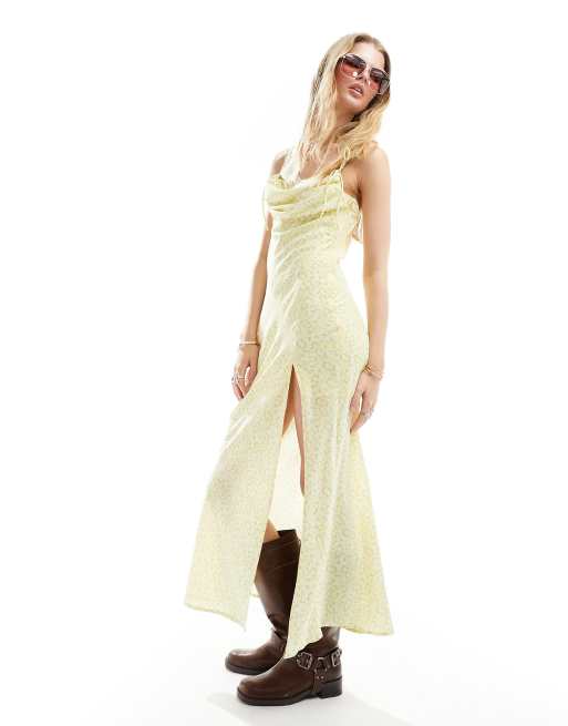 Kiss The Sky cowl neck floral print cami maxi dress in lemon