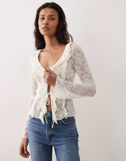 Kiss The Sky Lola long sleeve frilly tie up top in cream