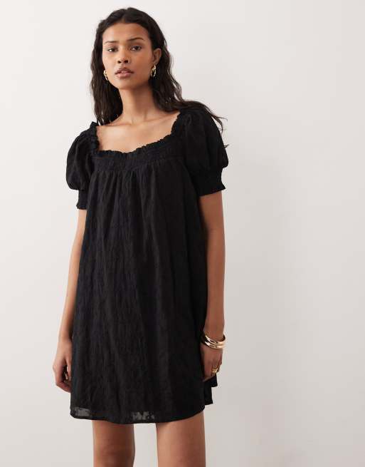 Kiss The Sky Malta short sleeve broderie babydoll mini dress in black