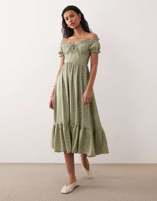 Kiss The Sky Marabella midaxi polka dot dress in sage