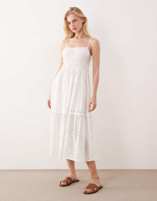 Kiss The Sky Seraphina shirred broderie midaxi dress in white