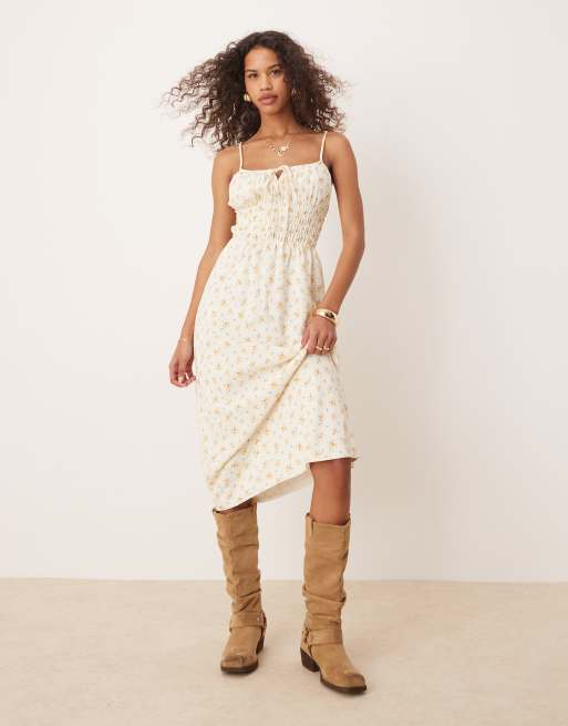 Kiss The Sky shirred midi dress in yellow floral print