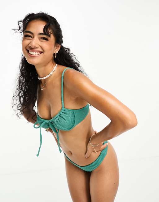 Kulani Kinis x Hannah Meloche & Ava Jules ribbed ruched underwire bra bikini top in sage green