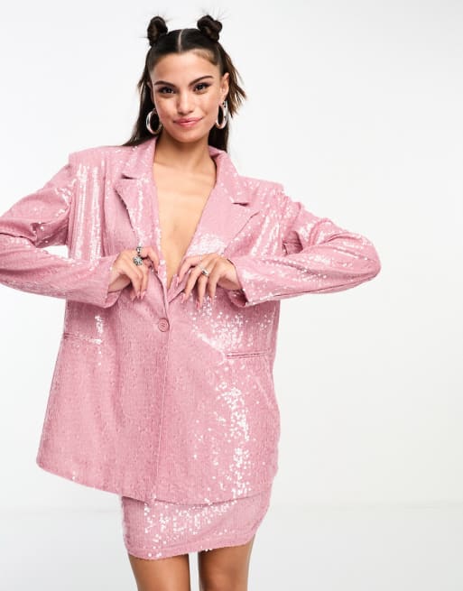 Kyo The Brand tailored sequin blazer and mini skirt co-ord in mauve