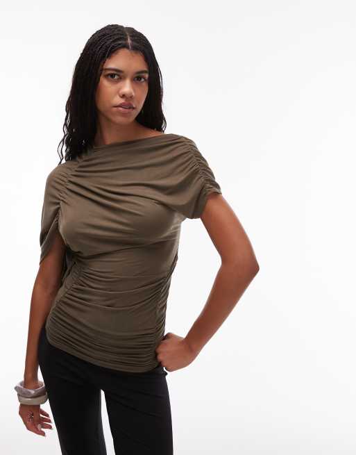 LAAGAM aeris draped top in khaki