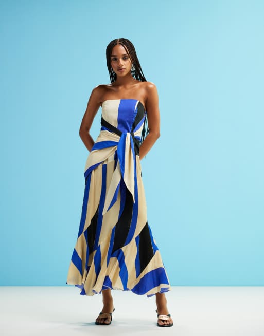 LAAGAM aria bandeau striped midi dress in blue